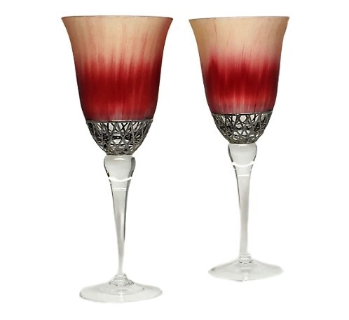 Бокалы для вина "Пламя" h 25 см 2 шт, арт 9025, богемское стекло, олово, Glass Fantasy