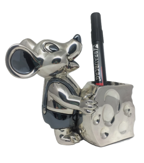 Карандашница "Мышонок с сыром" h 12*14 cm, art 6547, Principi Argenti