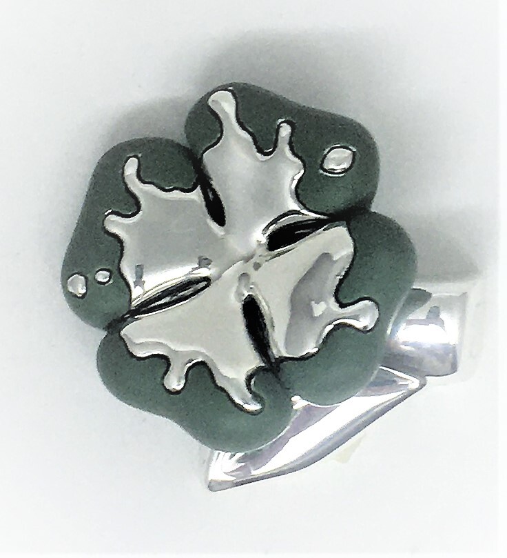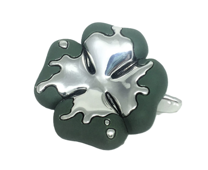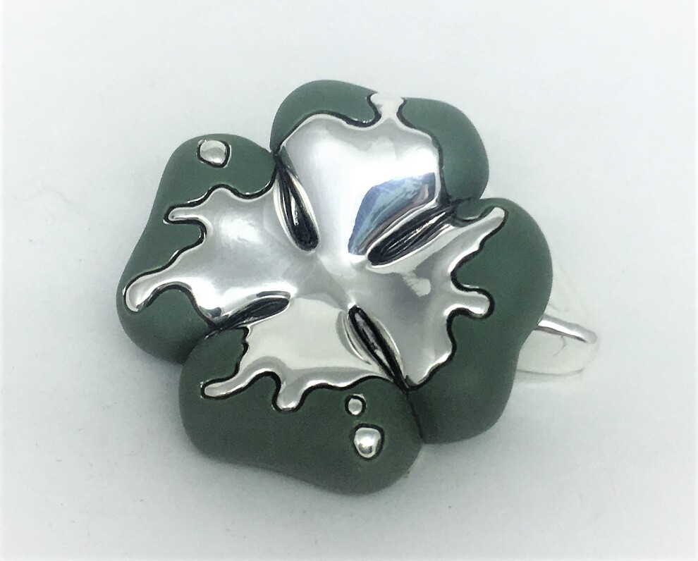 Клевер четырехлепестковый приносит удачу, статуэтка изготовлена в Италии фирмой Principi Argenti, основа композит (мраморная крошка и смола), покрыта серебром 925 пробы гальваническим способом, декорирована цветными эмалями