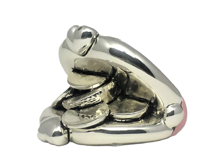 Кошелек с монетами прекрасный подарок для привлечения финансов, статуэтка изготовлена в Италии фирмой Principi Argenti, основа композит (мраморная крошка и смола), покрыта серебром 925 пробы гальваническим способом, декорирована цветными эмалями