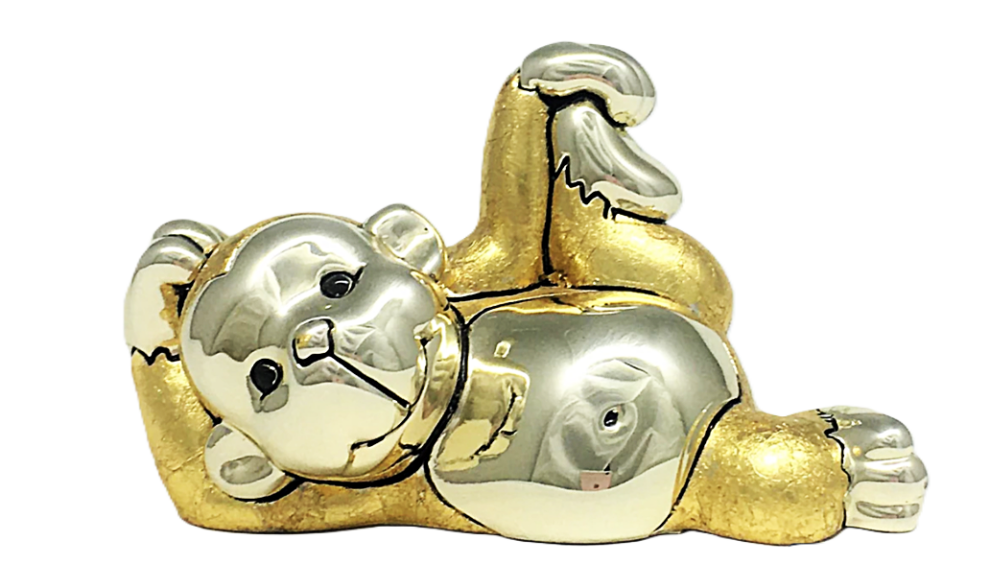 Статуэтка изготовлена в Италии фирмой Principi Argenti, основа композит (мраморная крошка и смола), покрыта серебром 925 пробы гальваническим способом, декорирована сусальным золотом 24 карата