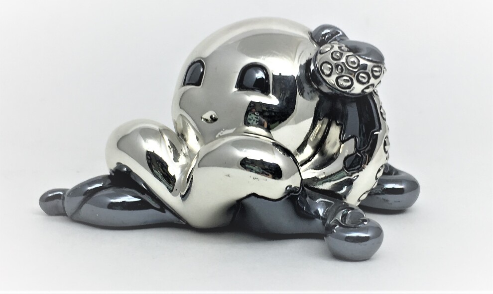Статуэтка изготовлена в Италии фирмой Principi Argenti, основа композит (мраморная крошка и смола), покрыта серебром 925 пробы гальваническим способом, декорирована чернением методом родирования