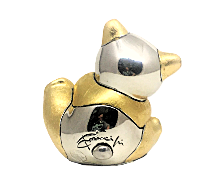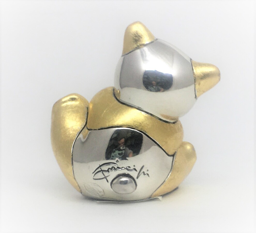 Статуэтка изготовлена в Италии фирмой Principi Argenti, основа композит (мраморная крошка и смола), покрыта серебром 925 пробы гальваническим способом, декорирована сусальным золотом 24 карата