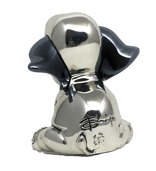 Статуэтка изготовлена в Италии фирмой Principi Argenti, основа композит (мраморная крошка и смола), покрыта серебром 925 пробы гальваническим способом, декорирована чернением методом родирования